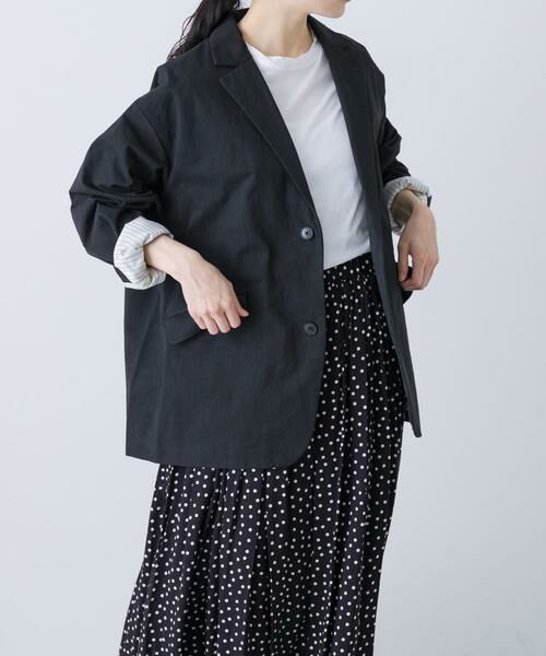 遠州染めならではの色味と風合いが雰囲気たっぷりの生地を使用しています。強風と日光を浴びた独特なムラや細かなしぼが特徴です。さっと羽織るだけで存在感のある着こなしに。袖はストライプの裏地でさり気なく存在感を高めたデザイン。パンツ・スカートはもちろんワンピースにも好相性。サロペットに合わせるスタイリングも程よい上品さがプラスされて素敵ですよ。かっちりし過ぎないので、オンオフ問わずコーディネートに大活躍。季節を問わない素材感は秋~冬手前と春先にも重宝します。同素材のパンツはシリーズアイテムからご覧ください。