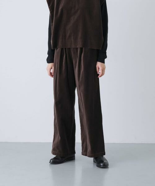 大人のスタイリングに寄り添うベルベットシリーズ。生地は極限まで柔らかく仕上げたコットン100%。柔らかくしなやかで高級感のある佇まいです。ウエストはゴム仕様の楽な着心地ながらも、ストンとしたストレートシルエットがきれい目な印象を叶えます。シャツやブラウスはもちろんニットとも好相性。シリーズのベストとセットアップで着用いただくのも素敵ですよ。カジュアルなトップスとも相性が良くシーンを問わず重宝するアイテム。