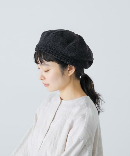 様々な服装や髪型に寄り添いさり気なくポイントになるアイテム。内側のリブはざっくりと編まれ、フィット感があり軽やかなかぶり心地です。手編みならではの温もりがありつつシックなカラーがナチュラルになりすぎないバランスに仕上がっています。他のペルーアイテムもご用意しているのでぜひご覧ください。