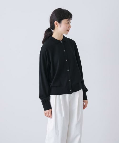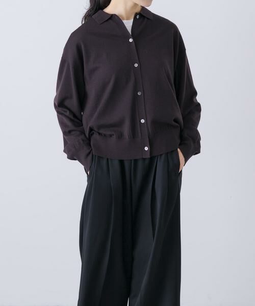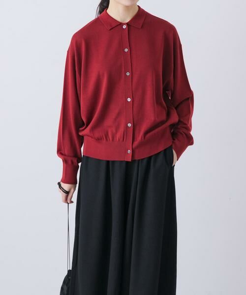 ほんのりとハンサムなムードをまとうニットカーディガン。襟のデザインがきちんとした雰囲気を後押ししています。ハイゲージに編立られたクリアな表面は高級感のある佇まい。程よくゆとりがあり肩が落ちるデザインなのでどこか女性らしいムードも兼ね備えています。スカート/パンツどちらも相性が良く、お仕事にも日常にもシーンを問わず活躍の予感。インナーにTシャツを合わせてラフなムードをまとわせるのもこなれ感が増しおすすめです。ウール特有のごわつきを感じにくく快適に着用いただけます。手洗いが可能なので気軽に着られるのも嬉しいポイント。