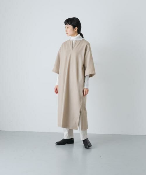 表面が綺麗なウール素材を使用した一品です。長袖のカットソーやハイゲージニット・ブラウス等と重ね着がしやすいハーフスリーブがポイント。袖口にはドローコードが入っているので、シルエットが変えられます。裾に深めのスリットが入っているデザインです。パンツとのレイヤードやロングブーツともバランス良くコーディネートが可能。両脇には便利なポケット付き。