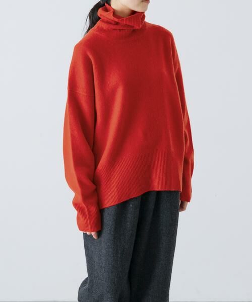 毛100%でご用意したタートルネックをご紹介します。丈はさり気なく前後差がありヒップに少しかかる長さに設定。ゆるめのサイズが抜けた雰囲気を演出。裾に向かってほんのりとコクーンになっていて、着た時にこなれ感を生むシルエットに仕上げました。全体的に上品な印象で大人のカジュアルスタイルになじむ1枚。しっとりとしたタッチなので、チクチク感が苦手な方も心地よく着用いただけると思います。シリーズアイテムもぜひご覧ください。