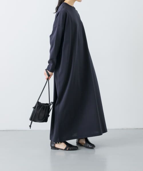 シンプルなカットソー生地のロングワンピースをご紹介します。毛羽の少ない特殊な構造で紡績した綿のポンチ素材は、毛玉が発生しにくく着心地の良いドライタッチな風合いが特徴です。クリアな表面感がカジュアルになりすぎず上品な印象に。着るだけで抜けた雰囲気まとうワイドシルエットがポイント。コンパクトな首まわりも大人っぽさを後押ししています。さらっと1枚ではもちろん、ジャケットやカーディガンを羽織ったり、ベストを重ねたり。思っている以上に様々なコーディネートが叶うアイテム。両脇には嬉しいポケット付きです。