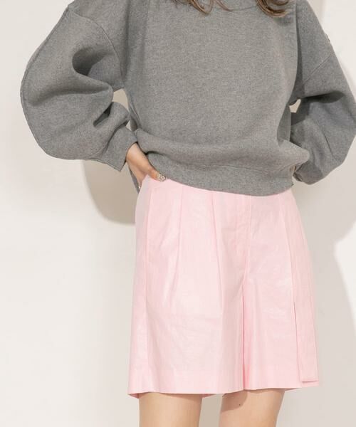 程よい光沢感とウエストベルトが映えるハーフパンツ。センタープレス仕様&絶妙な質感が大人っぽく、上品な印象を与えます。腰回りはすっきりとメリハリを持たせ、合わせるアイテムを選ばない万能シルエットです。様々な活躍が期待できるBEIGE&NAVYと、トレンドライクなPINKの3色をご用意しました。
