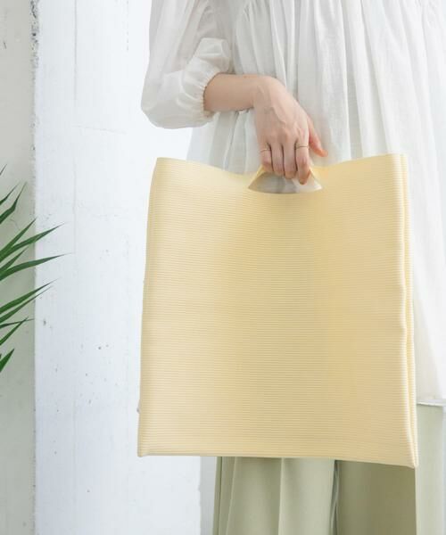 日常使い&リゾートシーンに使用いただける大きめなスクエアニットBAG。そのままお持ちいただくだけでなく畳んでクラッチBAGとしても活用できます。
