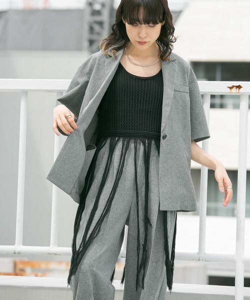 裾の長いフリンジが目を惹く、ニットタンクトップ。普段のスタイリングにプラスするだけでお洒落な印象に仕上がる1着です。合わせるアイテム次第でカジュアル、大人っぽさが演出できます。