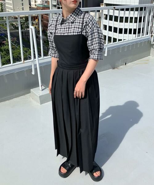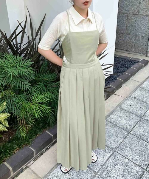 モードな雰囲気を醸し出すウエストのカッティングとコンパクトな身頃、上品さを引き上げるプリーツデザインが魅力のロングワンピース。バックスタイルは、クロスした華奢な肩紐ですっきりとした印象にしてくれます。腰位置を高めに設定しているのでスタイル効果アップも抜群。合わせるインナー次第でロングスパンの活躍が期待できます。