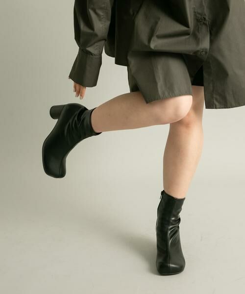 ワードローブに欠かせない、季節の変わり目に大活躍間違いなしなブーツ。ぽってりとしたフォルムが魅力的且つ、丸みのあるヒールもポイント。また、ステッチデザインもさりげなくて◎程良くツヤ感のある素材はカジュアル~きれいめまで幅広いスタイリングに取り入れやすいです。