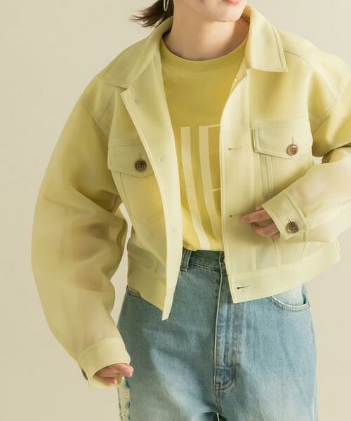 ダンボール素材ならではの程良いハリが魅力のジャケット。シアー感もあり軽やかさを演出します。クロップド丈なのでトレンドのボリュームパンツとバランス良く着ていただけます。羽織りとしてのみならず、釦を全て閉じトップスとしてお使いいただくのもおすすめです。