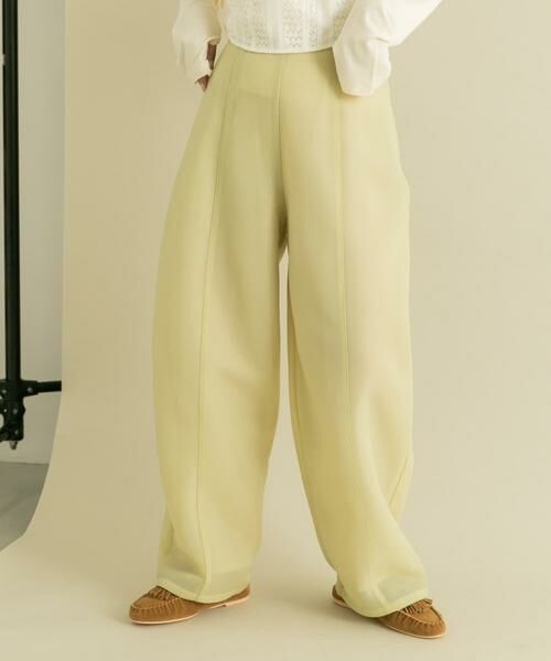 ダンボール素材ならではの程良いハリが魅力のパンツ。シアー感もあり軽やかさを演出します。ナチュラルストレッチ且つ後ろゴム仕様で穿き心地も抜群。コクーンディテールに仕上げたシルエットはベーシックTEEと相性抜群です。