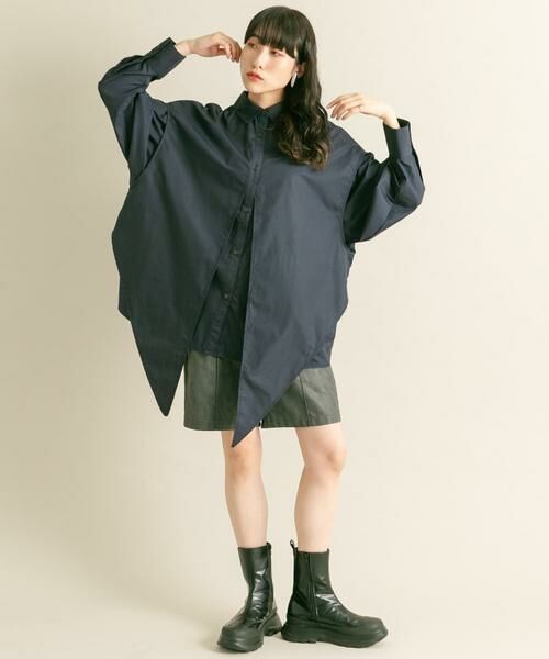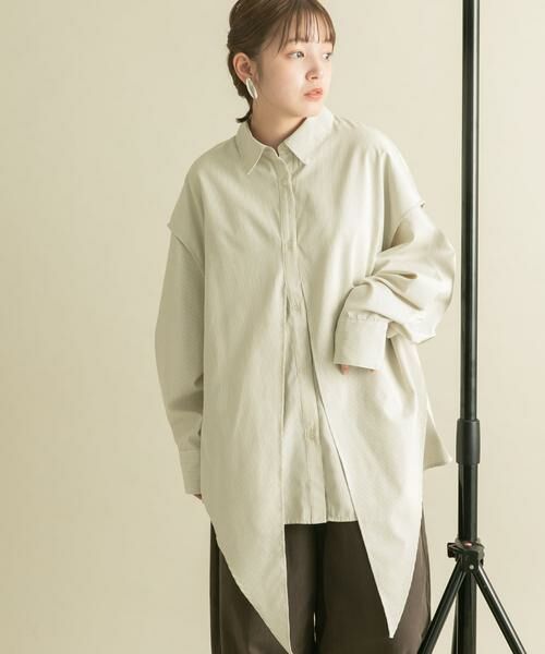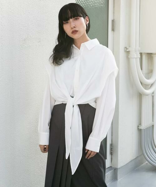 シャツとブルゾンをドッキングしたようなデザインが魅力のスタイリング格上げアイテム。フロントのレイヤード仕様と、ヘムラインがモードさをプラスします。レイヤード部分はそのまま垂らすも良し、その日の気分で結ぶ着こなしもおすすめです。