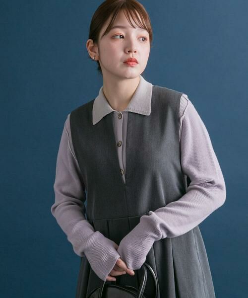 【レトロでクラシカルな雰囲気を纏う、バイカラーポロRIBニット】