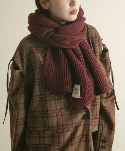 カラーによって異なる色言葉が書かれたタブがポイントのリブニットマフラー。首回りはもちろん、顔周りに巻いてバラクラバ風にするのもおすすめです。どんなアウターとも相性が良く、シンプルなスウェットやロンTなどのカジュアルコーデにも合わせやすいです。