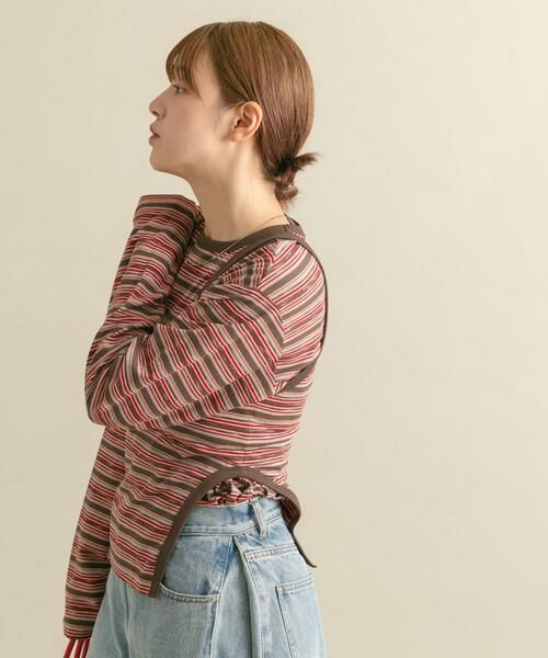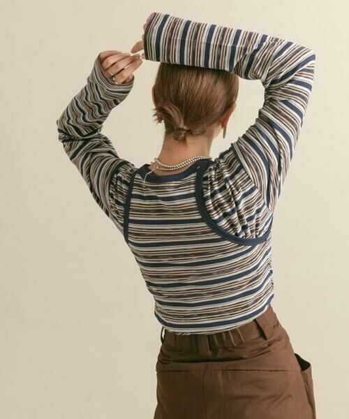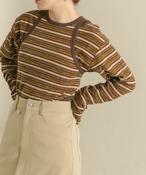 ボーダー柄のタンクトップとロンTEEがセットになった変化球トップス。程良く身体のラインを拾い過ぎないサイズ感はカジュアルスタイルにおすすめ。セットで着ていただくだけでなく単品使いもできるので、幅広いスタイリングが楽しめます。