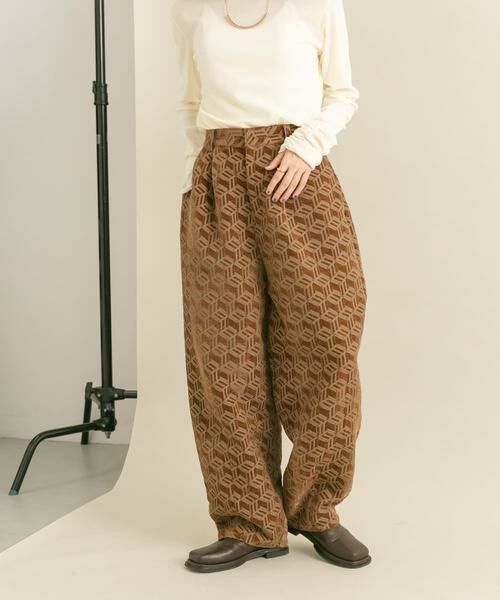 【全体に施されたジャガード柄が目を惹く存在感抜群パンツ】