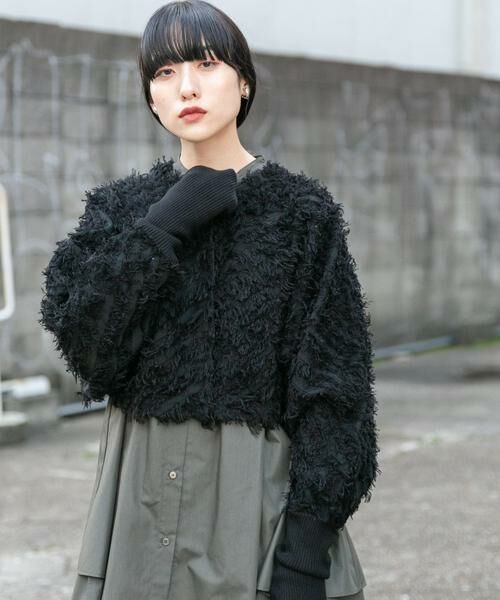 昨年ご好評いただいていたフリンジカーディガンが今年も登場。ジャガード編みの糸をカットし、フリンジのように仕上げました。また、羽織りのみならずトップスとしても使用いただける前後2WAY仕様が嬉しい1着。どんなボトムにも馴染みやすい程良い着丈や、サムホール付きもこだわりのポイント。定番のBLACK、優しい色合いのIVORY&PISTACHIOをご用意しました。