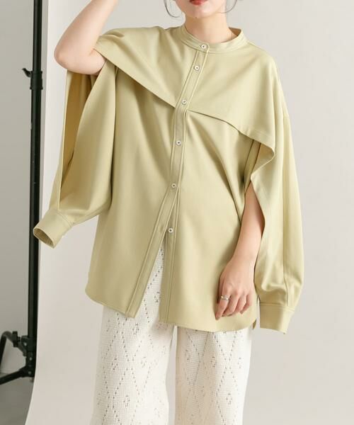 身頃~袖に繋がったヨークデザインが特徴的な1着。着ていただくと自然なドレープ感が生まれ、モードな着こなしが叶います。袖部分はスリット仕様なので、気分によって腕を出したスタイルも可能です。寒い時期にも嬉しい程良く厚みのある素材にも注目。合わせるアイテム次第できれいめコーデも叶います。
