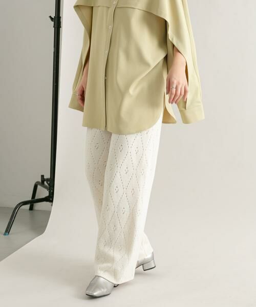大きめのダイヤ柄の透かし編みが特徴的なニットパンツ。ベロア糸を使用しているので肌触りが良いところがポイント。短めの裏地が付いているので透ける心配がなく、楽な穿き心地が叶うゴム仕様も◎どんなコーデにも合わせやすいIVORYと、存在感を放つORANGEをご用意しました。