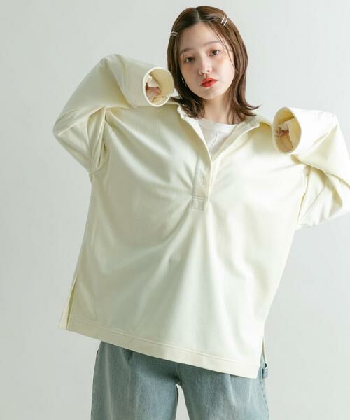 肌触りの良いベロア素材を使用したトップス。程良く深めに開くフロント釦が特徴的で、インナーにタートルやロンTEEを重ねたレイヤードスタイルが楽しめます。メンズライクなゆったりとしたサイジングは、女性らしいアイテムを合わせた甘辛MIXスタイルが叶います。