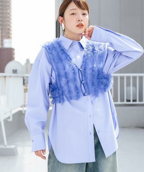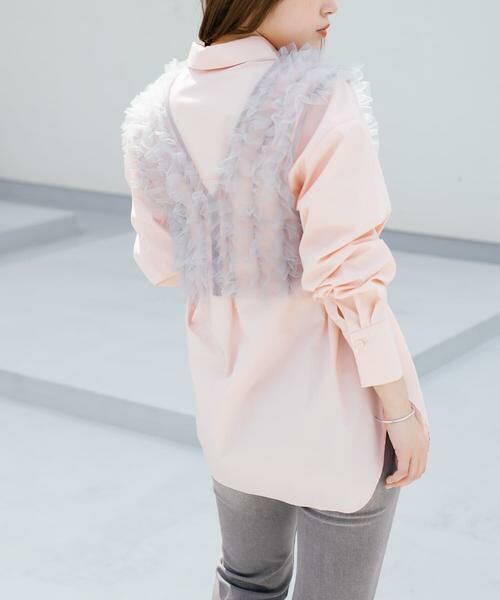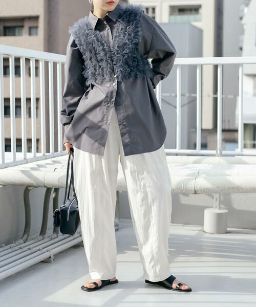 セットの着用はもちろん、シャツはカーディガンやジャケットのインナーに入れたり、コンパクトトップスの上からチュールをレイヤードしたり様々な着こなしが楽しめます。いろんなテイストに合わせやすいアイテムです。