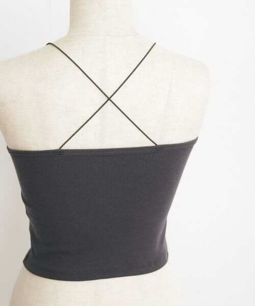 ワードローブにあると便利なカップ付きキャミソール。胸元は安心感のあるストレートラインで仕上げました。コードストラップがバッククロス仕様にしているところもポイント。お色違いでお持ちいただくのもおすすめです。