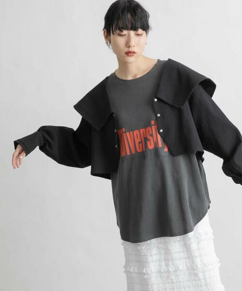 程良いハリのある素材を使用した、ビッグカラーが存在感を放つデザインブラウス。アウトスタイルでもバランス良く仕上がるショート丈と、ふわっとカフスに溜まるよう設定されたギャザーのディテールがポイント。クラシカルな雰囲気にしてくれる1着です。