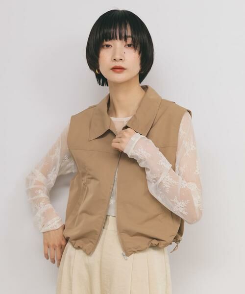 後ろ身頃にタックを施し、バルーンシルエットに仕上げたデザインベスト。コンパクトなサイズ感で、ほっこりし過ぎないよう素材やファスナー使いにこだわりました。裾はドローコード仕様になっており、絞っていただくとよりバルーンシルエットが引き立ちます。レイヤードコーデに重宝するアイテムです。