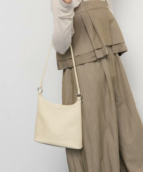 2本の太さの異なる華奢なショルダーと、程良い光沢のある生地で仕上げたBAG。ショルダーはカラビナに通しているので、どちらかを外して使用いただくことも可能です。ミニマルなサイズ感はメインのみならずサブBAGとしても大活躍し、ちょっとしたお出かけにもぴったりです。