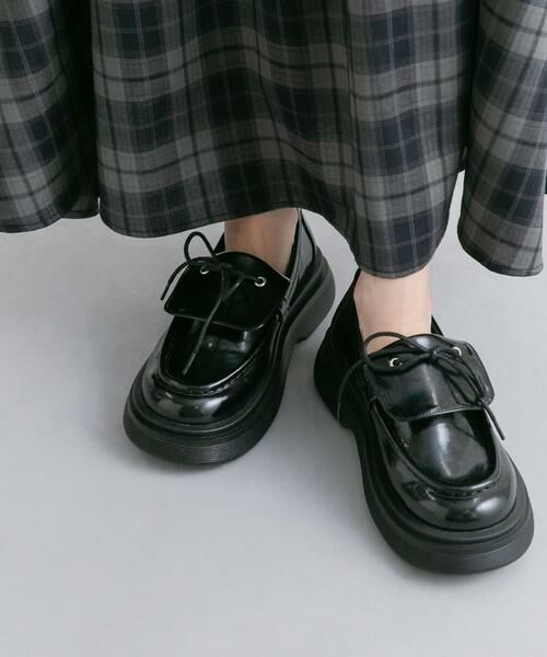 昨年人気のパイピングデザインローファーを、SSバージョンにアップデートした1足。今季はスニーカーのアッパーに使用されるベロが折り返されたディテールを取り入れ、リボンで程良い存在感を演出しました。歩きやすく、いつものコーデに取り入れるだけで足元をお洒落に仕上げてくれます。