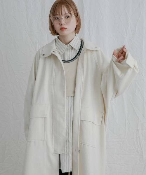 【モードな印象を放つスタンドカラーが魅力のロングコート】
