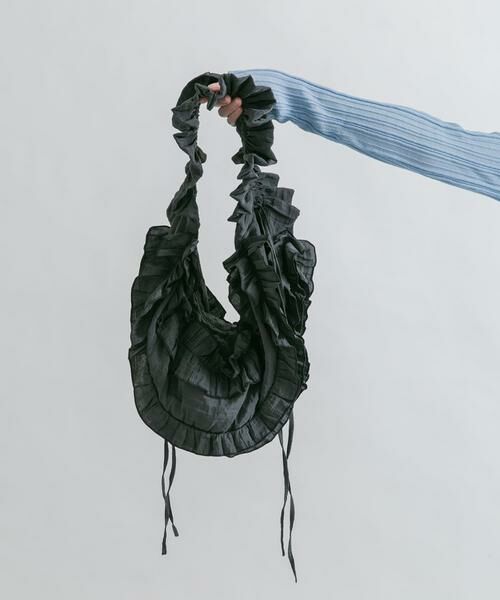 いつもの着こなしにプラスするだけでお洒落見え&鮮度UPなスタイルが叶うアイテム。立体感のあるフリルデザインが程良い甘さを醸し出し、薄手のナイロン生地にすることでカジュアル要素も取り入れました。手持ちのみならず斜め掛けしても可愛く、持つだけでトレンドらいくなコーデが完成。