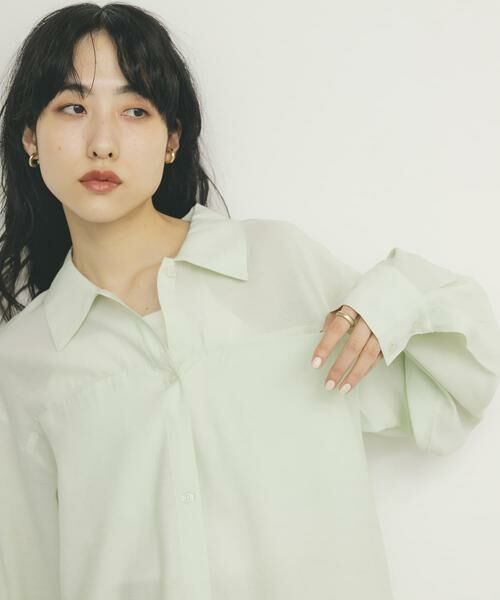 涼しげなドライタッチを使用した、程よくシアーのあるシャツ。体形カバーが叶い、細く見えるよう縦長のシルエットにしました。首元がすっきりと見えるように開き具合にこだわり、裾スリット仕様が程よい抜け感を演出します。