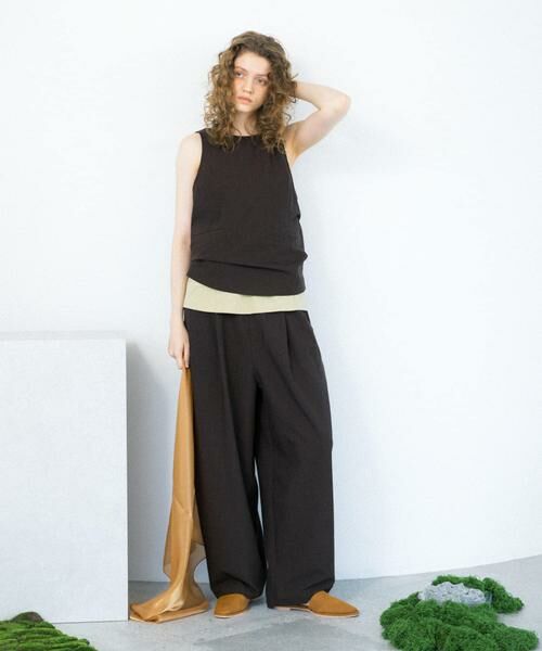セットアップで着ていただくだけでスタイリングが完成する万能アイテムです。タンクトップを合わせたヘルシーな着こなしや、レーストップスをレイヤードしたり雰囲気を変えていただけます。また、トップス・パンツと別々で使用いただけるので、お手持ちのアイテムともぜひ合わせて見てください。