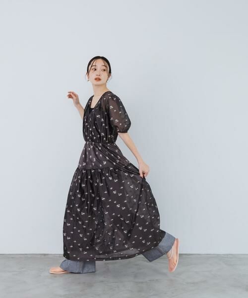大人可愛いワンピースなので、カジュアルなデニムやスラックスをレイヤードしたコーデがおすすめです。Vネックとクルーネックで少し雰囲気が異なるので、その日の気分や着こなしで変えていただくのが◎