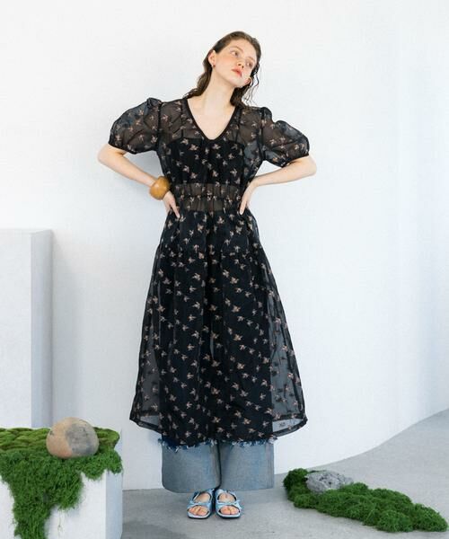 360度どこから見ても可愛い、全面に刺繍を散りばめた華やかワンピースが登場。透け感のある素材なので、様々なレイヤードコーデが楽しめます。程よくボリュームのあるシルエットや、丸みのある袖は女性らしさを引き上げます。すっきりと見せるVネック、少し甘めのクルーネックと前後2WAY仕様のところもポイントです。