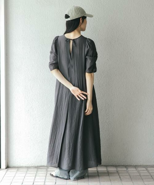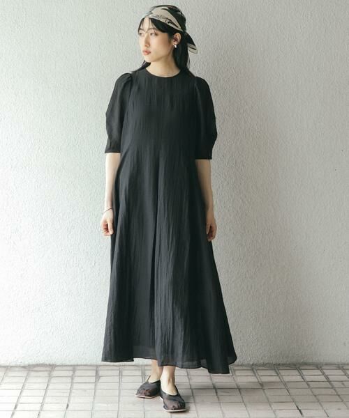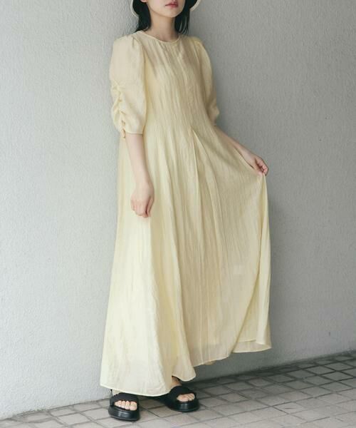 【袖のシャーリング&フレアシルエットが女性らしいワンピース】