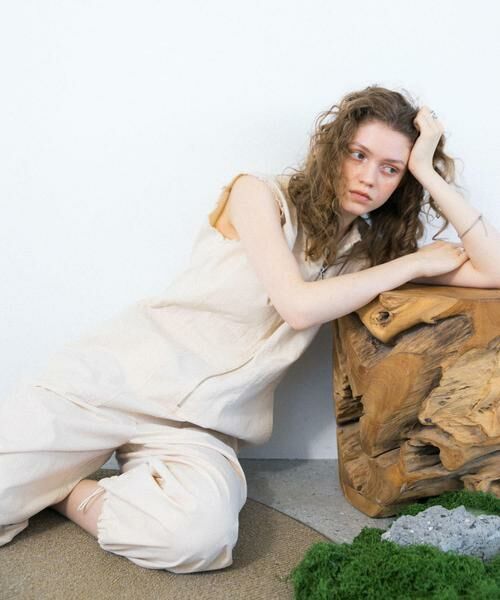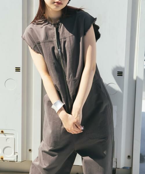 フロントZIP仕様と、襟ぐりとアームホールに施したフリンジがポイントのジャンプスーツ。程良くゆったりとしたサイジングながら、ウエストに入れた切替がスタイルアップを叶えます。また、後ろベルト付きなのでサイズ調整も可能です。着心地の良さが嬉しい綿100%素材も◎楽にお洒落に仕上がる1着です。