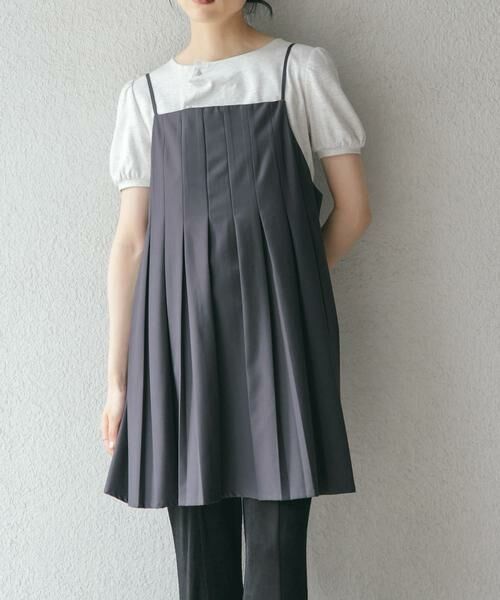 簡単に華奢見えが叶うミニキャミワンピース。360度ぐるりとタックを施し、身頃はすっきりとしつつも、ウエストから裾にかけて広がるシルエットがスタイルアップをしてくれます。後ろはゴム仕様になっているのでストレスフリーに着ていただけるところや、アジャスター付きの肩紐もポイント。いつもの着こなしにプラスするだけで、今年らしい仕上がりになる1着です。