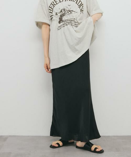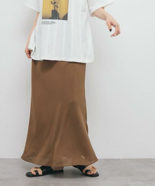 下半身の華奢見えと、脚長効果が叶うナロースカート。ウエストはゴム仕様で楽に穿いていただけます。裏地が付いているので透ける心配はなく、マットでさらっとした質感はトップスを選ばずにスタイリングが楽しめます。