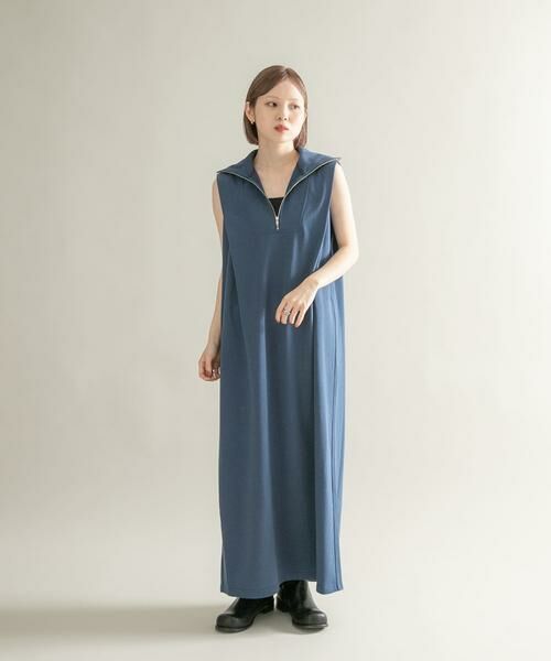 そのまま1枚着るだけでスタイリングが完成するワンピース。柔らかめの裏毛とリブ仕様、ハーフZIPデザインがポイントです。肩に入れたタックデザインは、二の腕や脇部分をホールドしてくれます。パンツをレイヤードしたコーデもおすすめです。