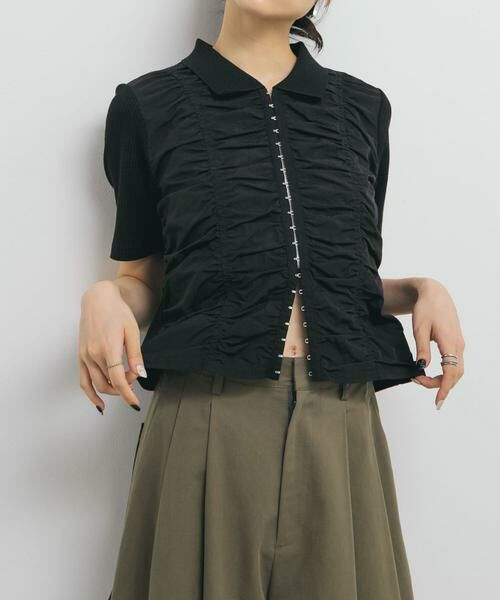 【フロントのシャーリングデザインがポイントのRIBトップス】フロントのシャーリング仕様や、ホックデザインが特徴的なRIBトップス。少しシティ感とフェミニンな要素が合わさったアイテムに仕上げました。程よくコンパクトなサイジングなので、ボリュームのあるボトムと相性が良く、ホックを少し開けてヘルシーに着ていただくのがおすすめです。【2025 Spring/Summer】【25SS】※商品画像は、光の当たり具合やパソコンなどの閲覧環境により、実際の色味と異なって見える場合がございます。予めご了承ください。※商品の色味の目安は、商品単体の画像をご参照ください。▼お気に入り登録のおすすめ▼お気に入り登録商品は、マイページにて現在の価格情報や在庫状況の確認が可能です。お買い物リストの管理に是非ご利用下さい。
