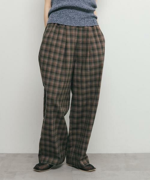 涼しげな綿素材を使用したダークカラーのチェック柄で、大人っぽさを引き上げたパンツ。程よくハリのある素材とフラットなフロントベルトが、きちんと感を演出します。楽な穿き心地が叶うウエストゴム仕様も嬉しいポイント。存在感を放つので、シンプルなトップスやヘルシーなアイテムを合わせていただくのがおすすめです。