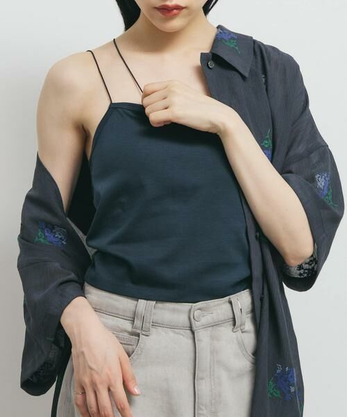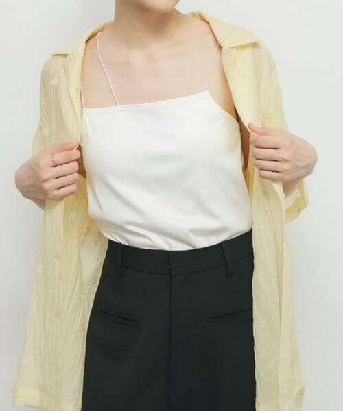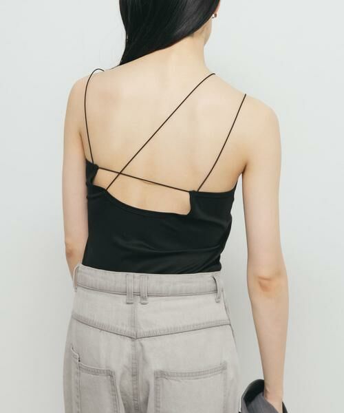 夏場でもさらっとした着心地が叶う、スムース素材を使用した取り外し可能なカップ付きキャミソール。華奢な肩紐は女性らしい印象を与え、バックのアシンメトリーデザインもポイントです。ナチュラルな肌見せや、シアーアイテムと好相性です。