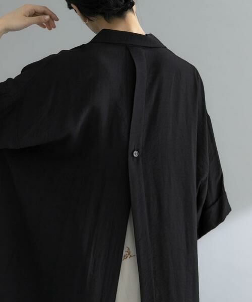【大胆に開いたバックオープンデザインが特徴的なBIGシャツ】