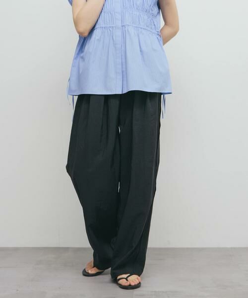 【リラクシーな穿き心地が魅力のイージーパンツ】少しワッシャーのある清涼感のある素材を使用したイージーパンツ。リラクシーな穿き心地が叶うウエストゴム仕様になっており、内側の紐で調整可能です。サイドにあえて縫い代を外側に出して両端にメローミシンをかけ、ラインのように見えるデザインがポイントです。【2025 Spring/Summer】【25SS】※この商品は、デザイン上モノフィラメント糸を使用しています。 特にお肌の弱い方は下に1枚着用することをお勧めいたします。※商品画像は、光の当たり具合やパソコンなどの閲覧環境により、実際の色味と異なって見える場合がございます。予めご了承ください。※商品の色味の目安は、商品単体の画像をご参照ください。▼お気に入り登録のおすすめ▼お気に入り登録商品は、マイページにて現在の価格情報や在庫状況の確認が可能です。お買い物リストの管理に是非ご利用下さい。