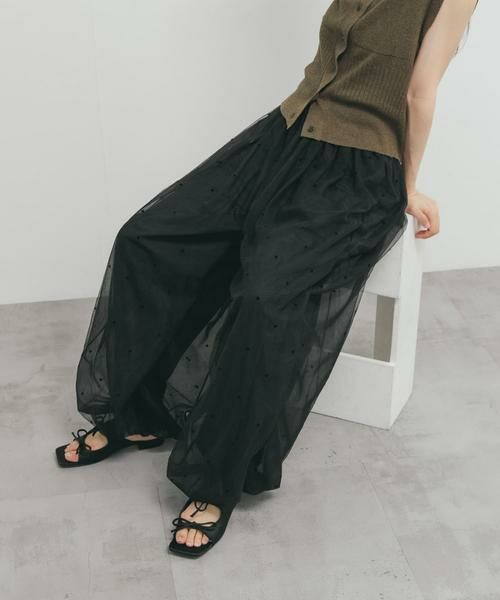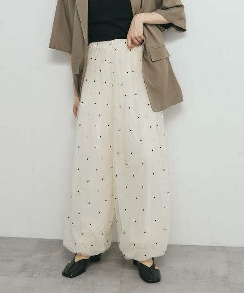 【ドットチュールが前面にあしらわれた大人可愛いパンツ】フロッキードットチュールが前面にあしらわれた大人可愛いパンツが登場。ウエストはゴム仕様で楽な穿き心地が叶い、程よくボリュームがでるので存在感を放ちます。パンツのデザインが活きるようシンプルなトップス合わせがおすすめです。IVORYとBLACKで雰囲気が異なるのでお好みのカラーをお選びください。【2025 Spring/Summer】【25SS】※この商品は、強い力がかかると破れる場合があります。着用時は、他のものとの引っ掛けにご注意ください。※商品画像は、光の当たり具合やパソコンなどの閲覧環境により、実際の色味と異なって見える場合がございます。予めご了承ください。※商品の色味の目安は、商品単体の画像をご参照ください。▼お気に入り登録のおすすめ▼お気に入り登録商品は、マイページにて現在の価格情報や在庫状況の確認が可能です。お買い物リストの管理に是非ご利用下さい。