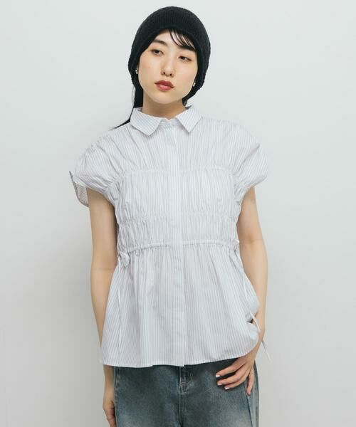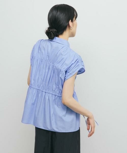 【フロントのデザインシャーリングが目を惹くブラウス】