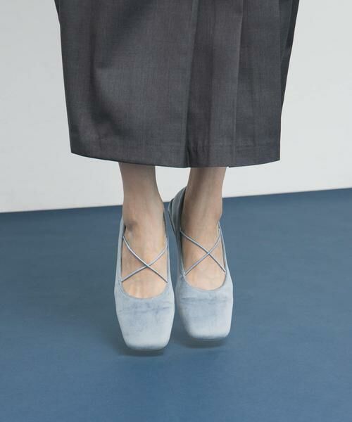 スエードライクなファー素材がかわいいクロスバレエシューズ。ラウンドトゥデザインや、華奢なクロスゴムデザインが女性らしい印象にしてくれます。着脱もしやすく、靴下を合わせても全体的に柔らかな雰囲気になるよう仕上げました。定番のBLACKと、差し色にぴったりなBLUEをご用意しております。