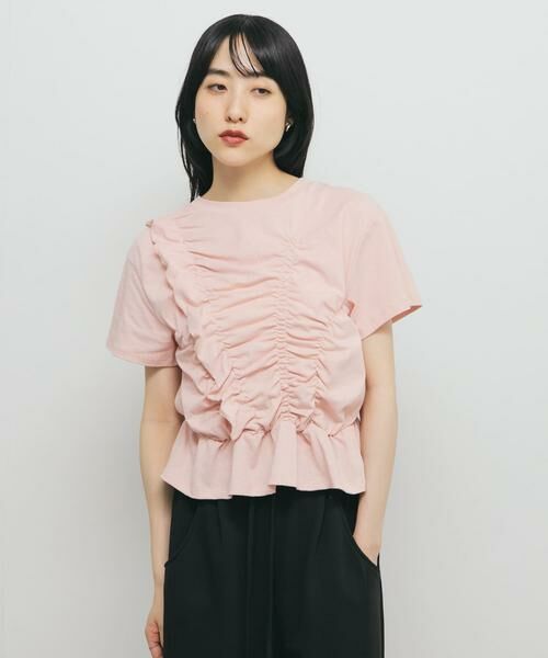 前後に施したシャーリングデザインが女性らしさを引き上げるフェミニンなトップス。程よくゆったりとした身幅にもかかわらず、縦にシャーリングを入れることで、すっきりとした印象に仕上げました。ベーシックボトムに合わせるだけで自然と華やかさを叶えます。
