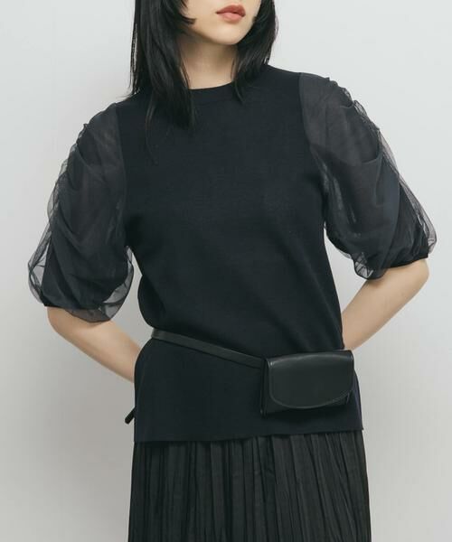 【女性らしさを引き上げるチュールスリーブがポイントのトップス】
